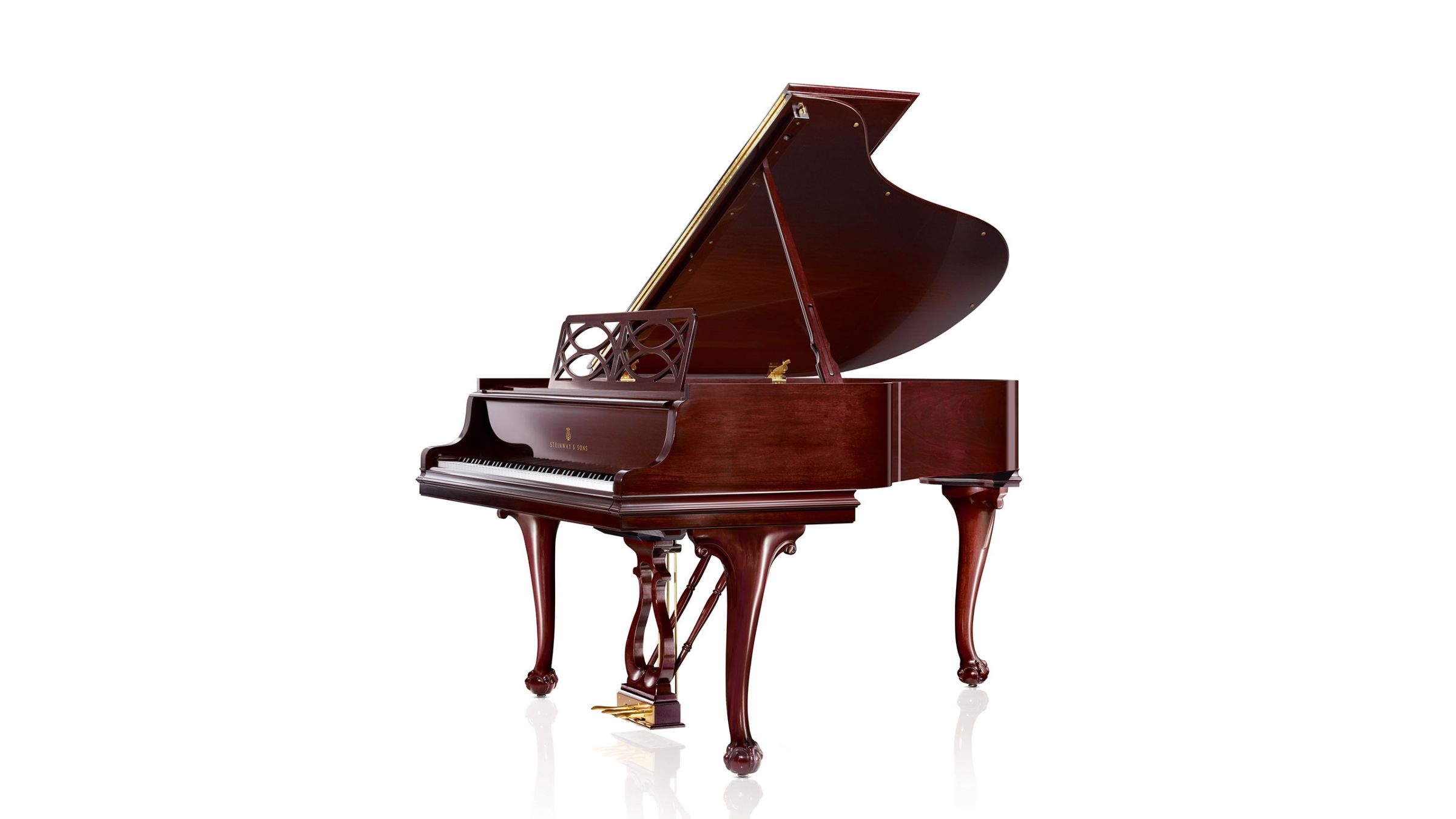This special-collection piano is a prime example of the Chippendale furniture style with the famous Ball & Claw style leg and foot, with all the grace and distinction of design made famous by Thomas Chippendale, master cabinetmaker of 18th-century England. Handcrafted legs and lyre. Length: 5’7″ (170 cm)